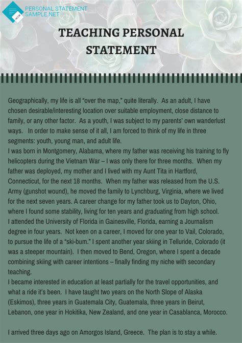 Download SAMPLE TEACHER PERSONAL STATEMENT Library Binding Open Library